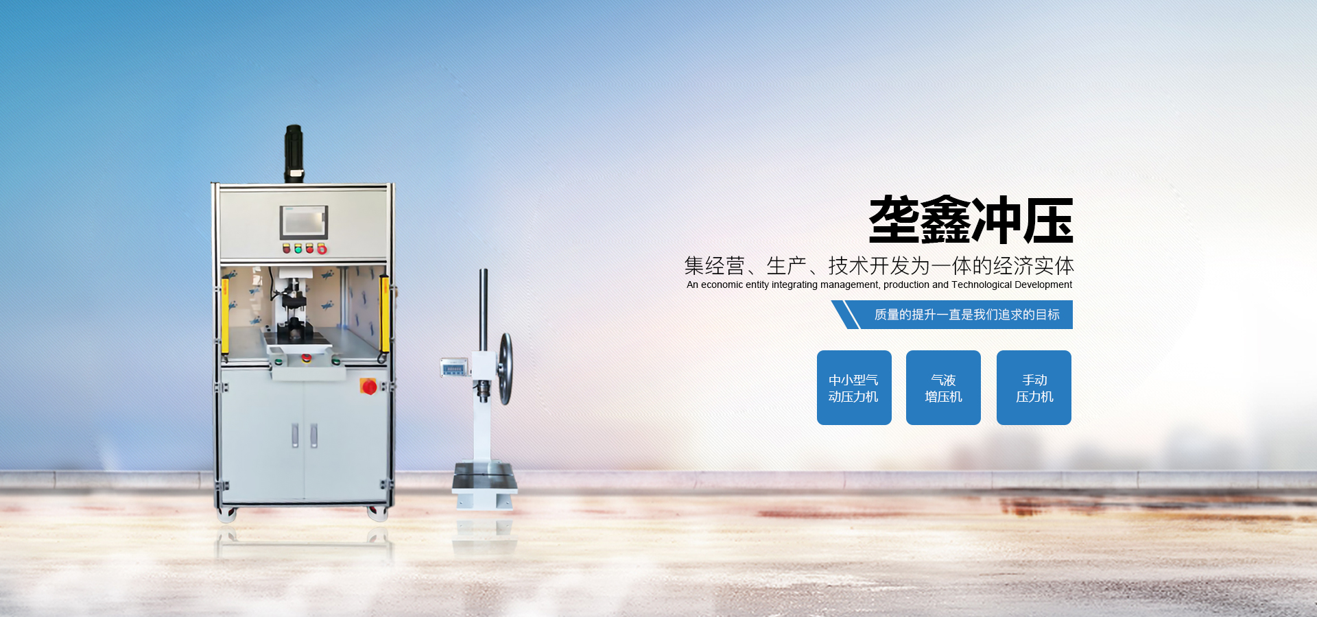 煙臺壟鑫沖壓設(shè)備有限公司是集經(jīng)營、生產(chǎn)、技術(shù)開發(fā)為一體的經(jīng)濟(jì)實體,專業(yè)致力于中小型壓力機(jī)、非標(biāo)壓力機(jī)的設(shè)計開發(fā)和制造。在引進(jìn)德國、日本等國家先進(jìn)的鉚壓控制技術(shù)及機(jī)器設(shè)計理念的基礎(chǔ)上,結(jié)合相關(guān)行業(yè)的實際需要,開發(fā)出各種臺式、落地式氣動壓力機(jī)、手動壓力機(jī)、氣液增壓機(jī)、氣液增力缸、旋鉚機(jī)、無鉚釘鉚接機(jī)等鉚接設(shè)備。產(chǎn)品應(yīng)用領(lǐng)域廣泛,適用于汽車零件、電子、電器、家電、包裝、五金、等行業(yè)。公司視質(zhì)量為生命,并一貫遵循對每一臺產(chǎn)品負(fù)責(zé),對每一位用戶負(fù)責(zé),真誠為您服務(wù)。 自公司成立以來,秉承“誠信,創(chuàng)新,專業(yè)”的經(jīng)營理念,以優(yōu)質(zhì)的產(chǎn)品,完善的售后服務(wù),樹立良好的品牌形象,服務(wù)于廣大新老顧客。我們竭誠于各位同仁攜手并進(jìn),共謀發(fā)展。